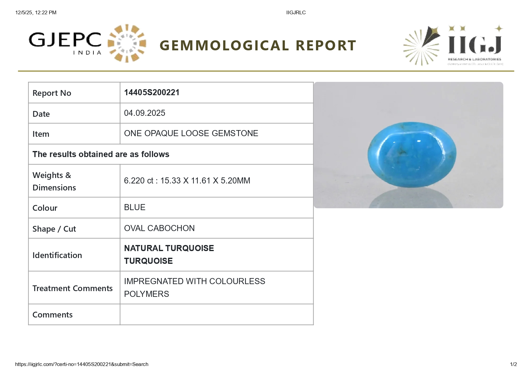 Govt Lab Certified - IIGJ (Formerly -IGI-GTL, Worth 1500/-) Verify