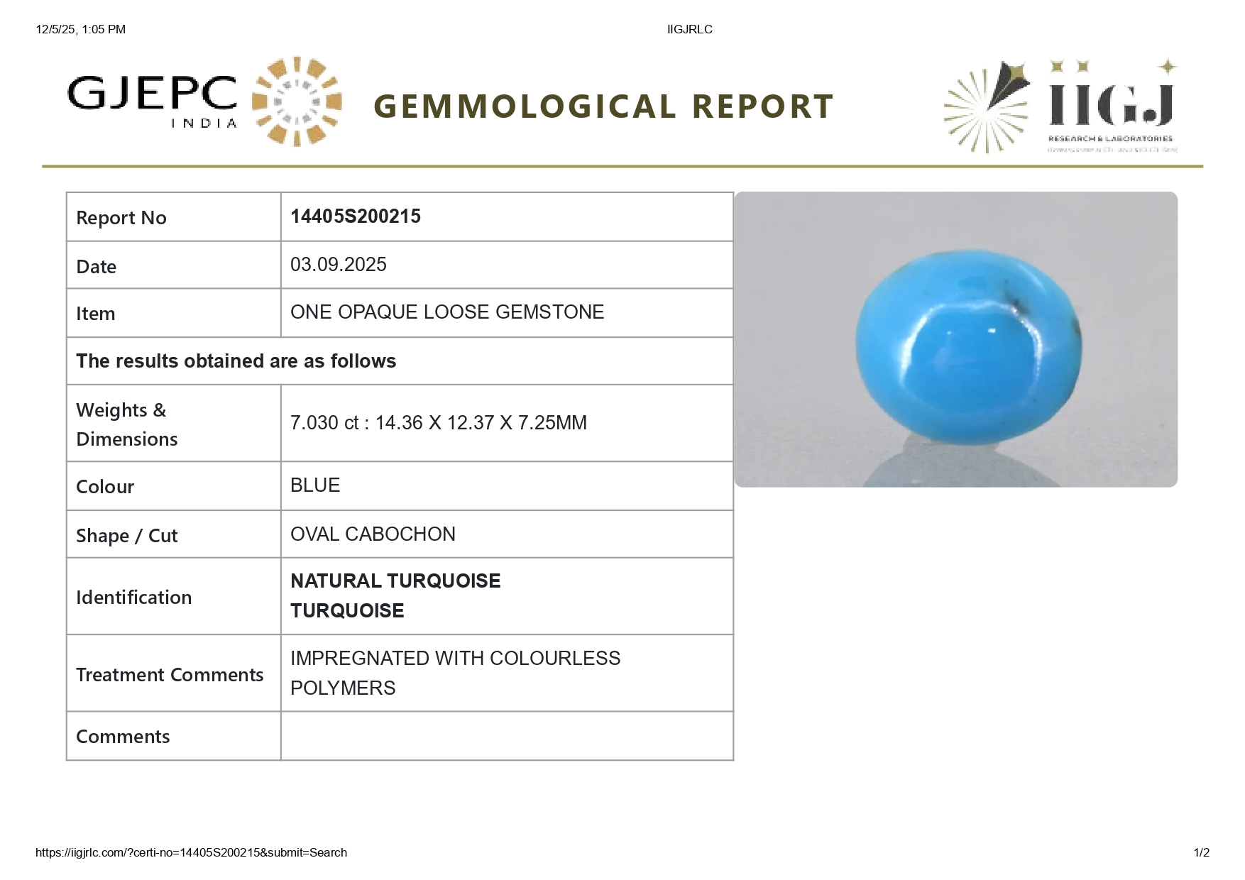 Buy one beautiful translucent 7.03 Carat/ 7.73 Ratti original Firoza stone online with premium quality and good color intensity. The origin of this Firoza stone is Iran.