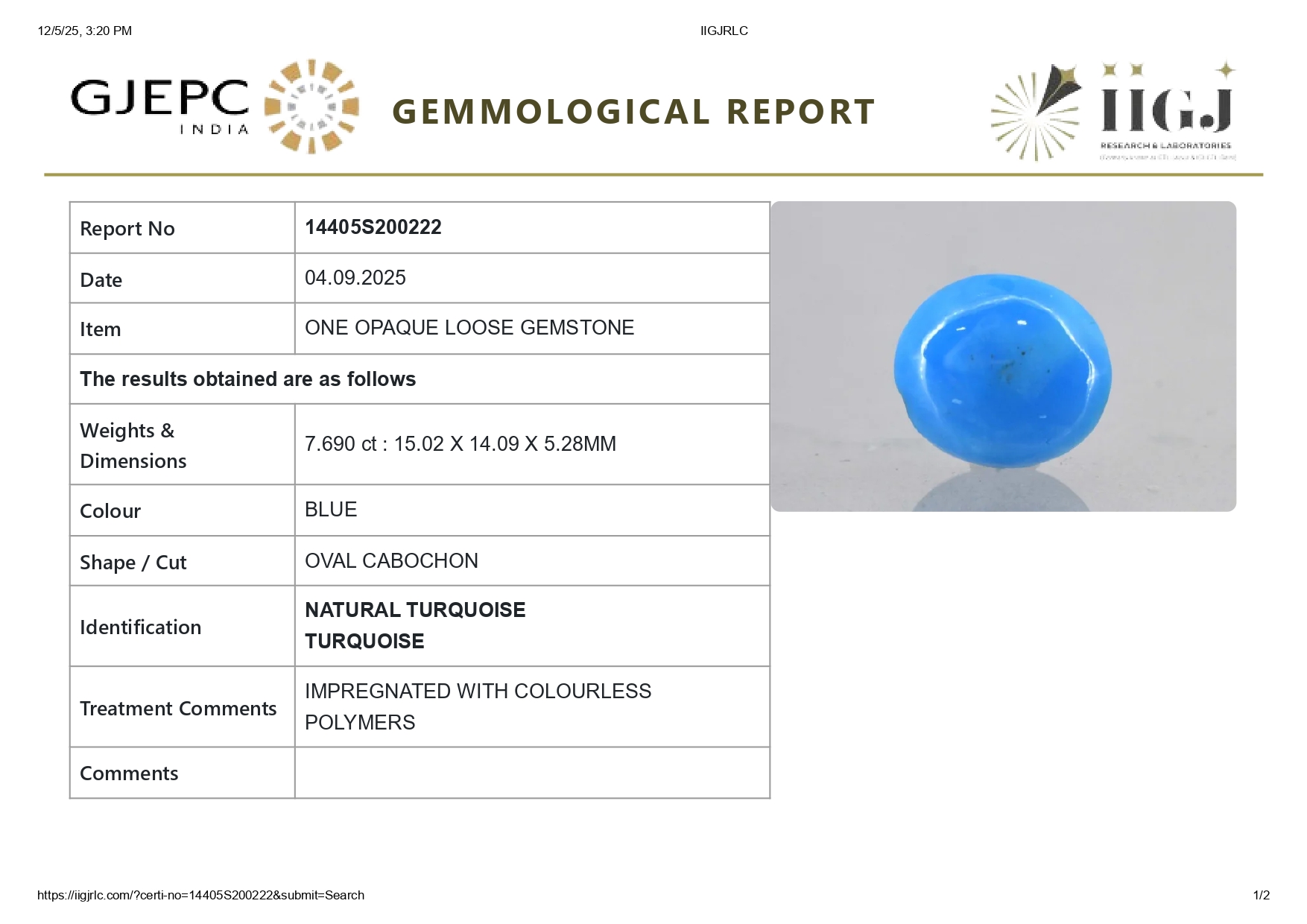 Govt Lab Certified - IIGJ (Formerly -IGI-GTL, Worth 1500/-) Verify